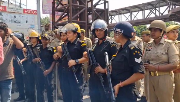 Uttar Pradesh: उत्तर प्रदेश के बरेली मंडल के चार जिलों में सुरक्षा कड़ी कर दी गई है। दशहरा के मद्देनजर गुरुवार को पुलिस, पीएसी और आरएएफ के जवान सड़कों पर तैनात हैं और ड्रोन हवा में उड़ान भर रहे हैं। सरकार ने बरेली में 48 घंटे के लिए इंटरनेट सेवाएं भी बंद करने का आदेश दिया है।
