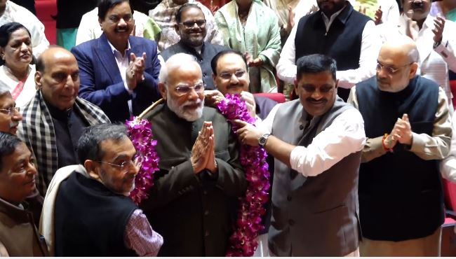 NDA सांसदों ने बिहार में शानदार जीत के लिए पीएम मोदी को दी बधाई, ये दिग्गज नेता रहे मौजूद