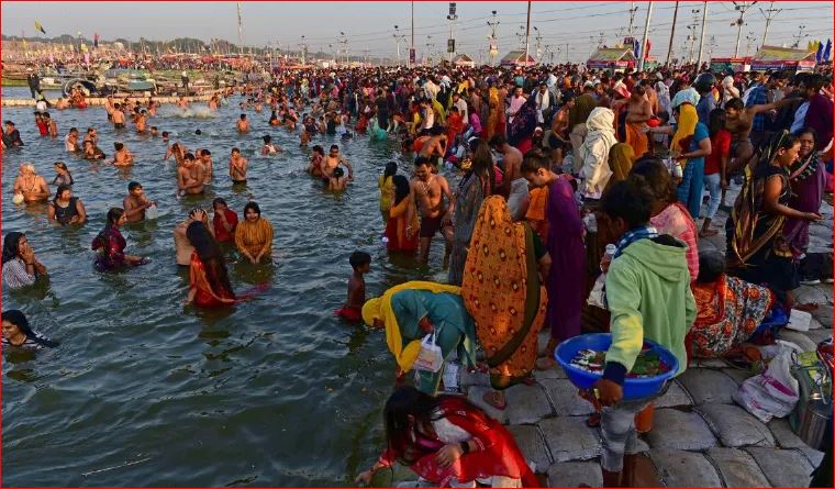 माघ मेले के पहले स्नान पर 12 बजे तक लगभग 12 लाख लोगों ने लगाई आस्था की डुबकी