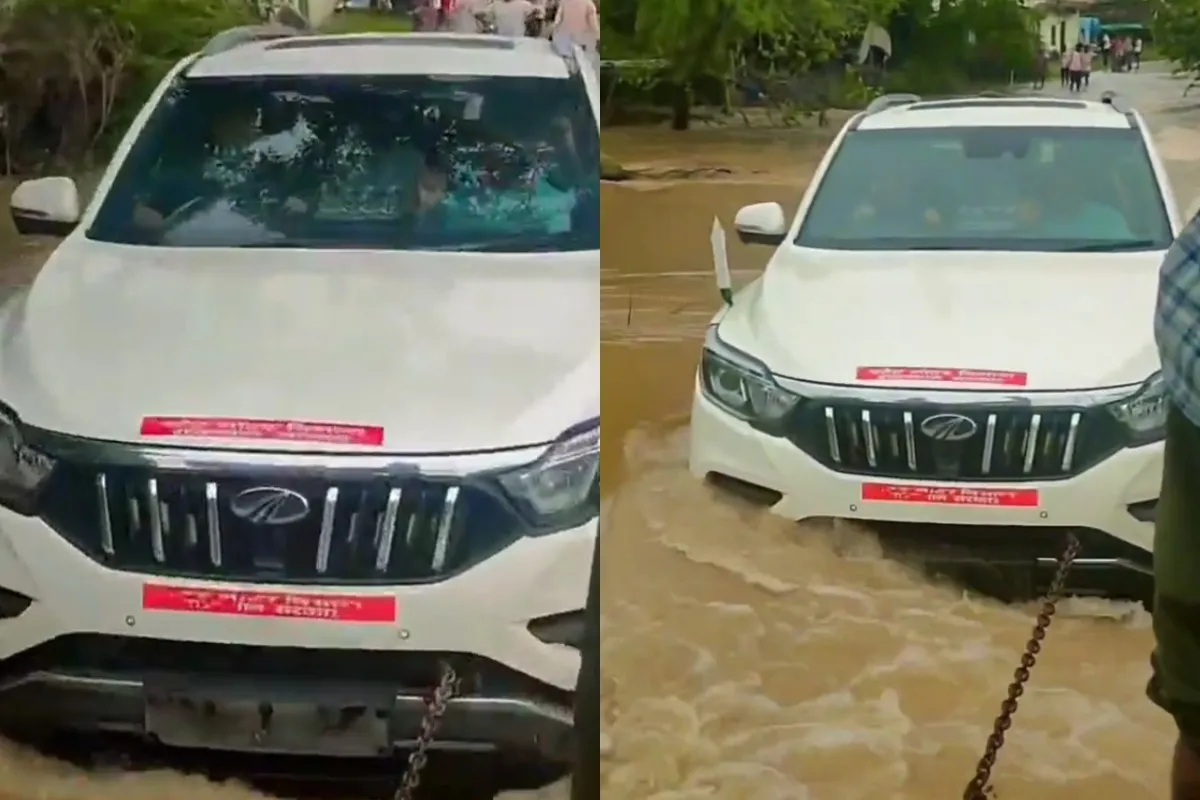 बारिश से हुए जलभराव में फंसी राजस्थान के मंत्री किरोड़ी लाल मीणा की कार