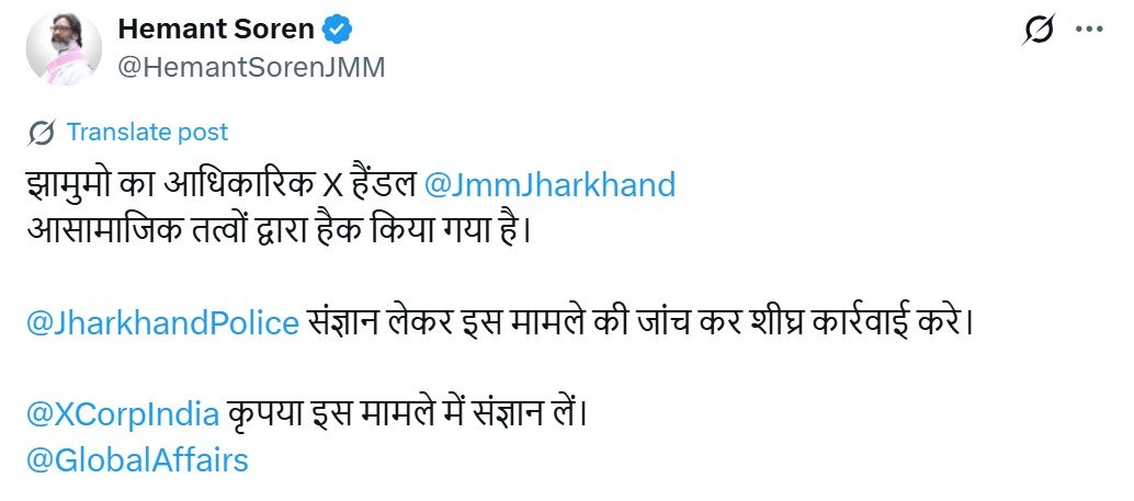 झारखंड मुक्ति मोर्चा का ट्विटर हैंडल हैक, हेमंत सोरेन ने दी जानकारी