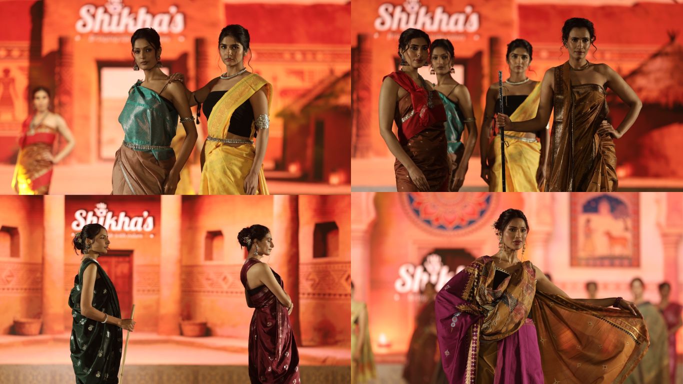 संध्या का विशेष आकर्षण वह क्रम रहा, जिसमें साड़ी को एक चलायमान चित्रदीर्घा के रूप में प्रस्तुत किया गया। पिचवाई, पटचित्र, वारली, गोंड, मधुबनी, असमिया और चित्तारा कला से प्रेरित मौलिक हस्तचित्रों ने वस्त्र को कैनवास में बदल दिया।