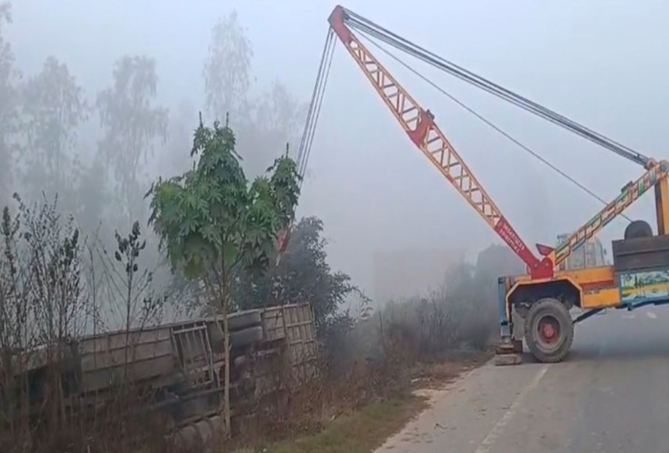 शाहजहांपुर में डबल डेकर बस पलटी, आधा दर्जन सवारी घायल