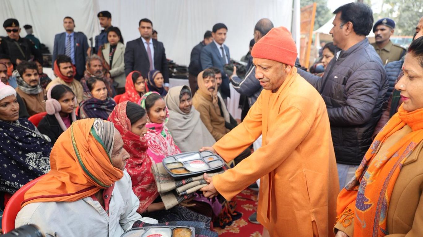 सीएम योगी ने किया दो रैन बसेरों का निरीक्षण, जरुरतमंदों में वितरित किया कंबल और भोजन