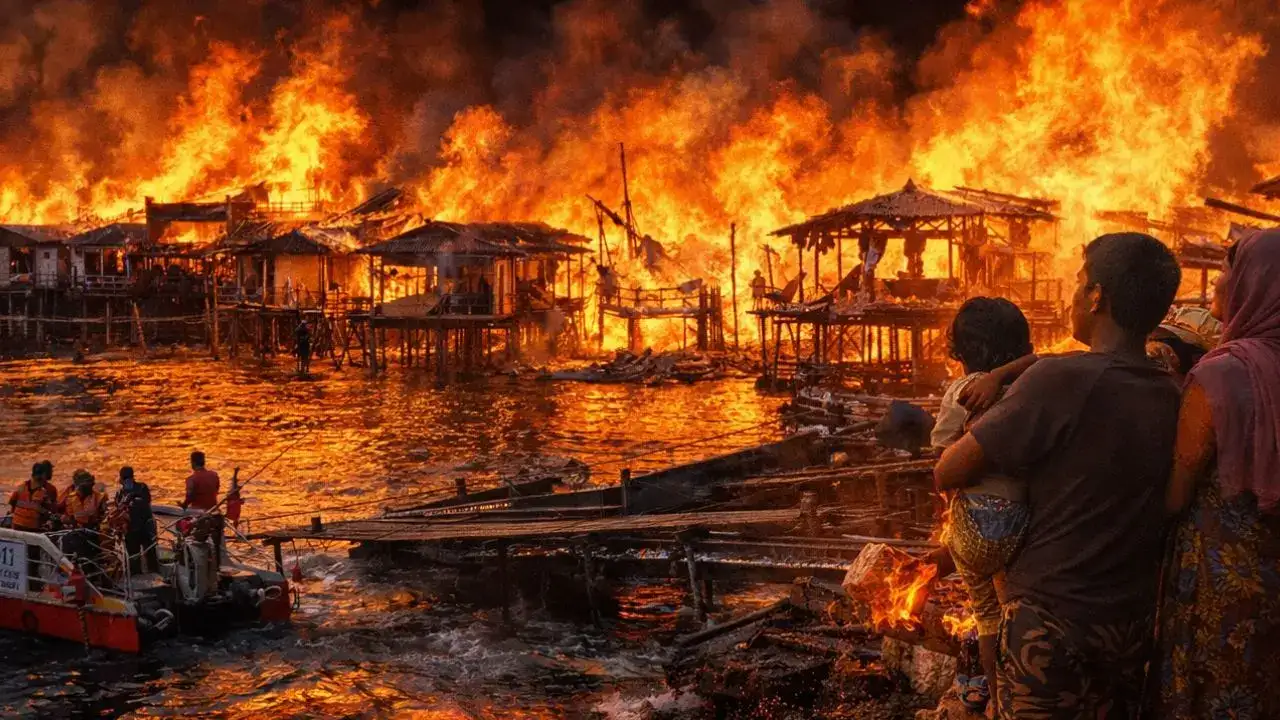 मलेशिया के सबाह में लगी भीषण आग, मिनटों में खाक हुए 200 घर