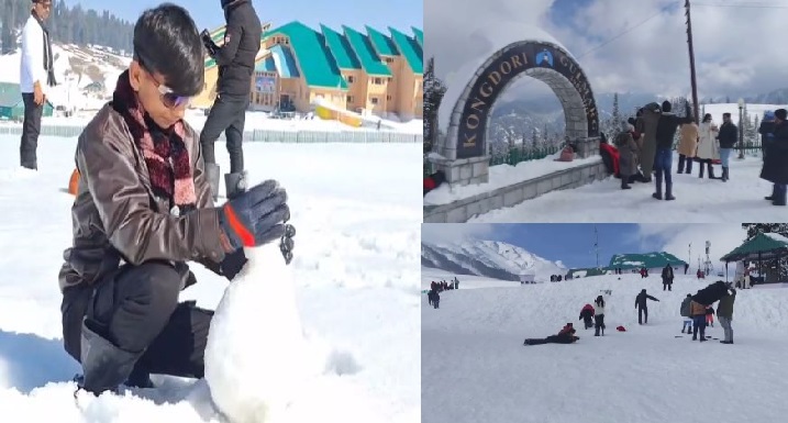 ताजा बर्फबारी से गुलमर्ग हुआ पर्यटकों से गुलजार, कारोबारियों के भी चेहरे खिले
