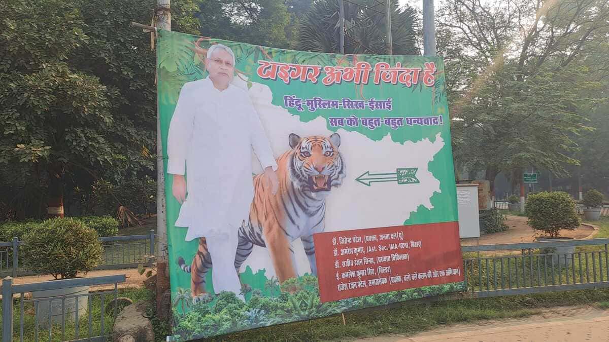 Bihar Election Result 2025: NDA की बढ़त के बीच CM आवास के बाहर लगा 'टाइगर अभी जिंदा है' का पोस्टर