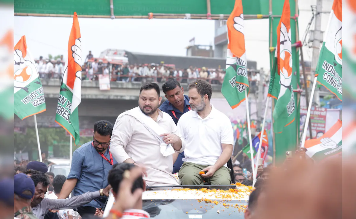 बिहार: अररिया में 'मतदाता अधिकार यात्रा' के दौरान राहुल गांधी और तेजश्वी यादव ने की बाइक की सवारी