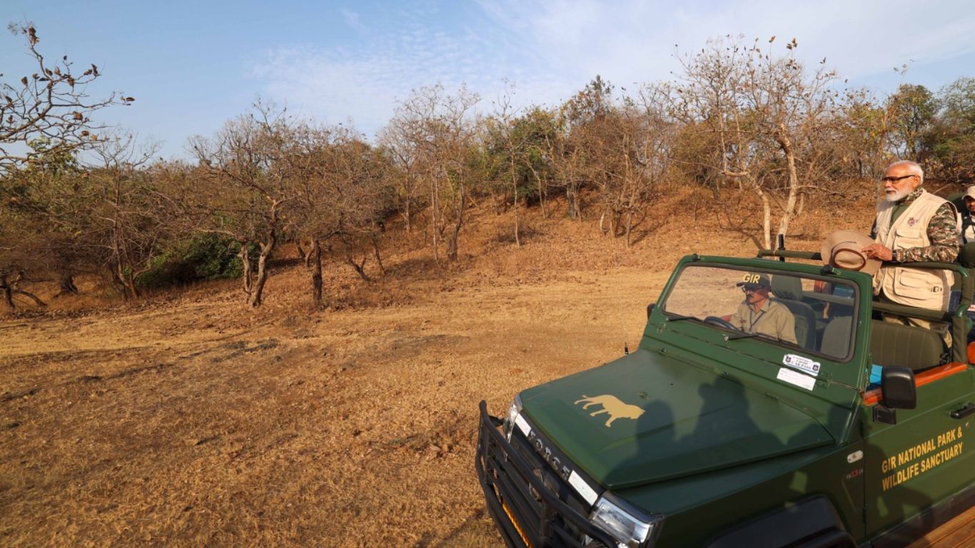 PM Modi ने गिर में सफारी का आनंद लिया, एशियाई शेरों के आवास के संरक्षण पर आदिवासियों को सराहा